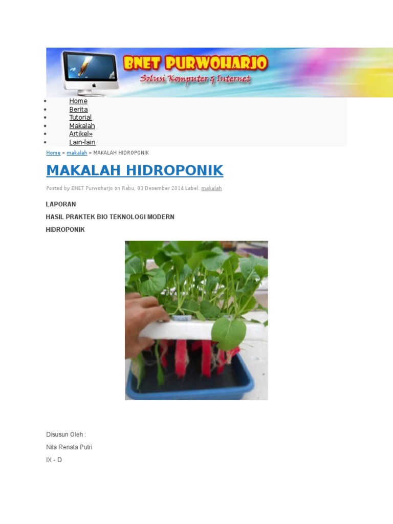 Pembahasan hidroponik. Pak sritejo yuli martono. Ur da w y t a tu ni penelitian tindakan sekolah pts penguatan kemampuan pengawas sekolah pusat pengembangan tenaga kependidikan. Perhatikan bibit pakan ikan lele dan cara pemeliharaan lele yang tepat.