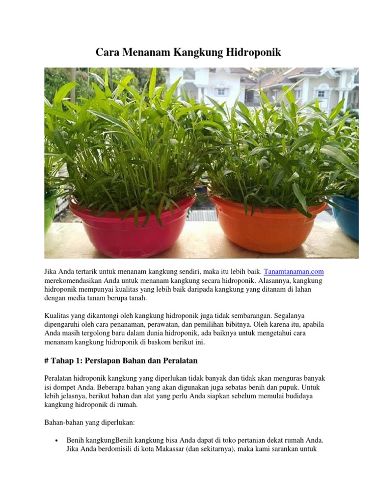 Bahan dan alat menanam kangkung hidroponik. Menanam dengan metode hidroponik tidak selalu harus menggunakan alat ukur. Teknik atau cara menanam hidroponik kangkung ini membutuhkan sinar matahari yang cukup.