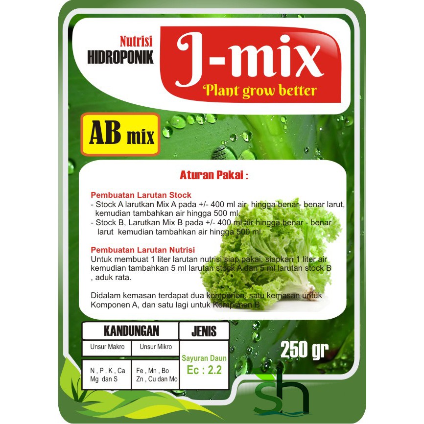 Nutrisi Hidroponik Ab Mix Sayuran Daun J Mix 250gr Pekatan 500ml