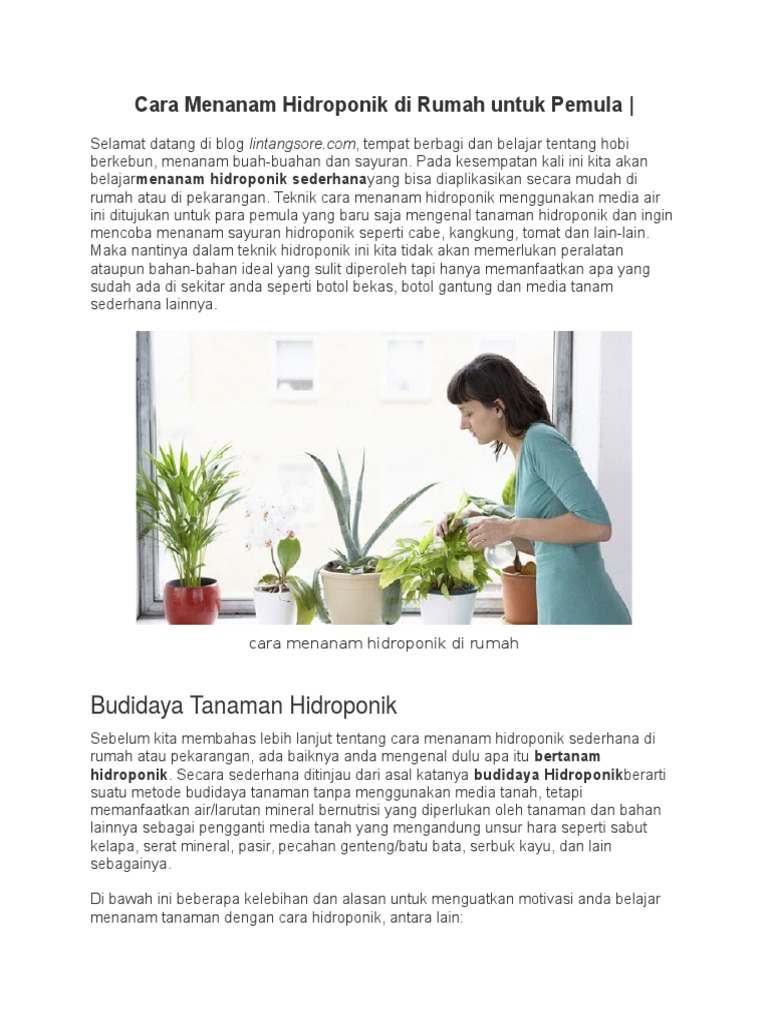 Cara bertanam hidroponik untuk pemula tidaklah sulit. Berikut adalah dua cara bertanam hidroponik untuk pemula yang paling sederhana dan mudah untuk dipraktekkan. Ada yang memulai suatu kegiatan hidroponik karena tiba.
